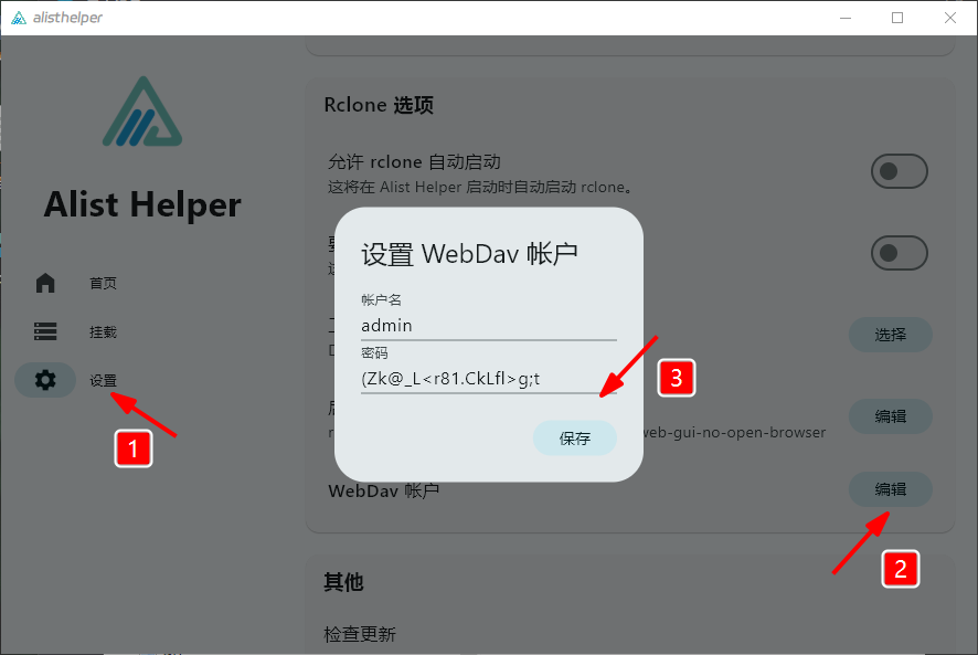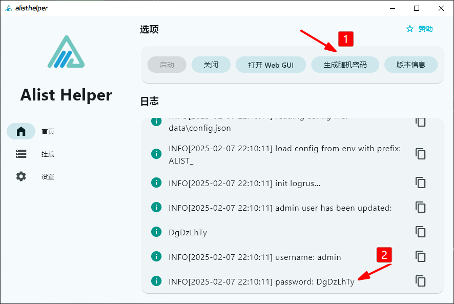 用户名默认:admin ,密码点击Alist Helper中的生成随机密码