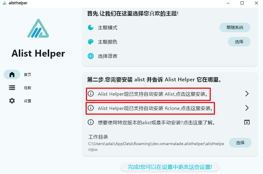 使用Alist Helper图像化Alist/Openlist和Rclone挂载云盘到本地使用。