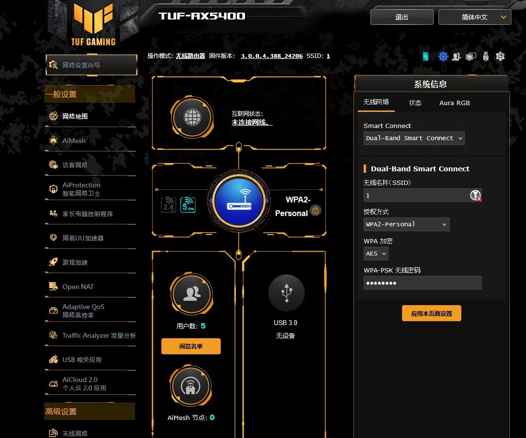 - 重置华硕路由器不要与主路由之间进行网线连接,之后登录路由器设置界面http://www.asusrouter.com/或者192.168.50.1进行设置