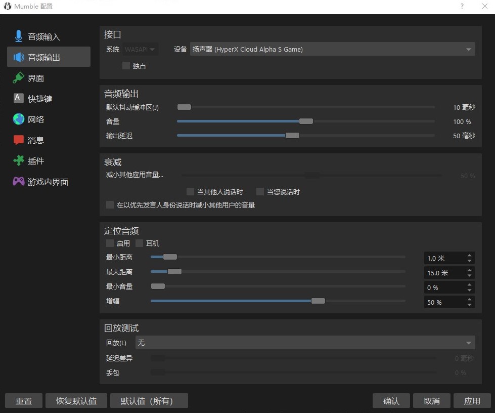 - 检查Mumble中的音频输出设置,确保选择了正确的设备