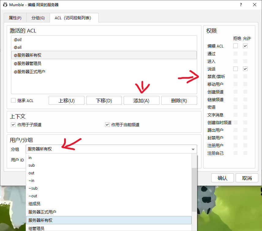 - 右键Root频道 → 编辑 → ACL