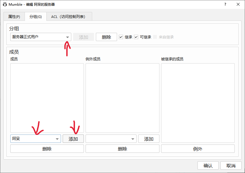 - 选择对应管理员或成员组,添加相应用户