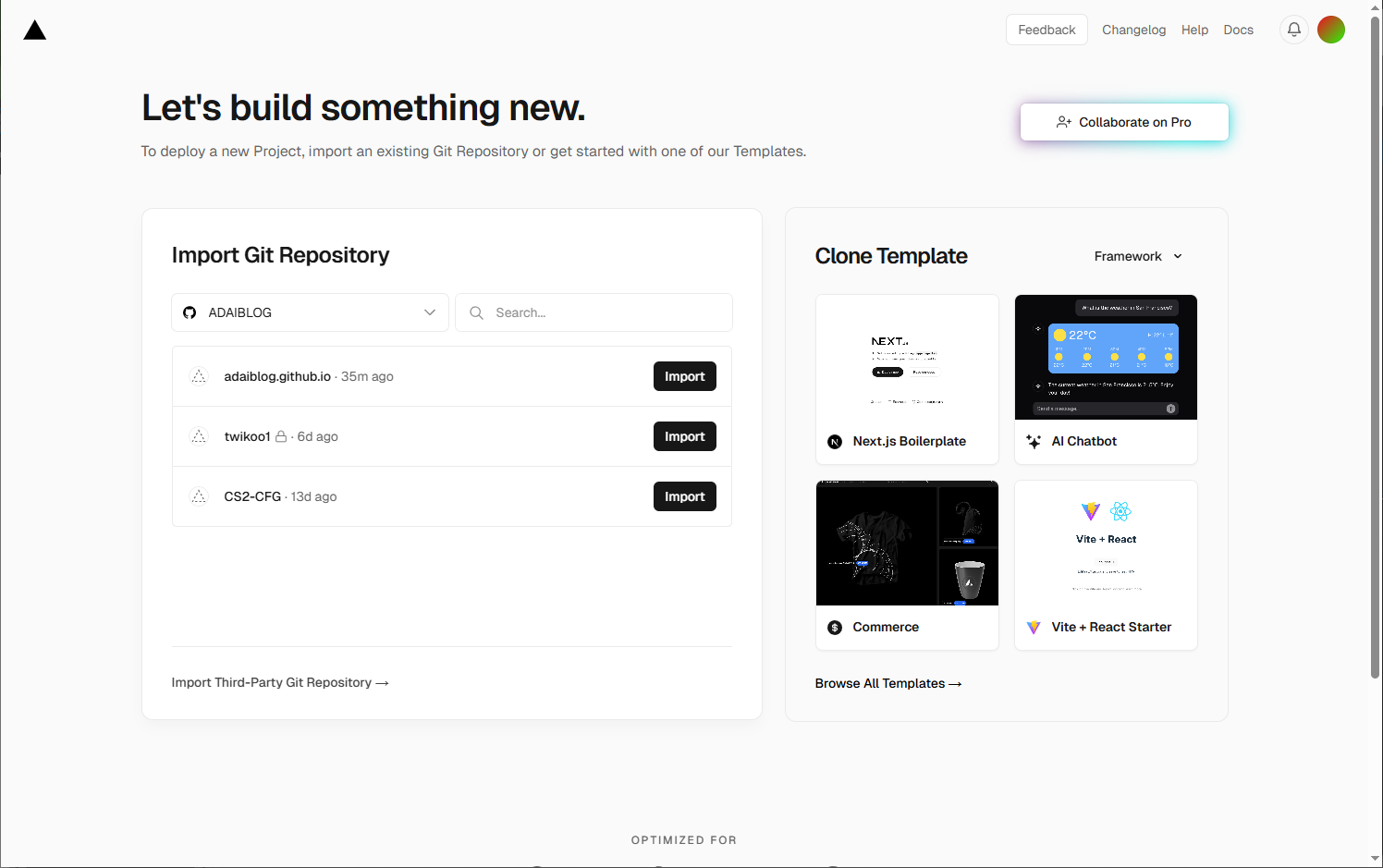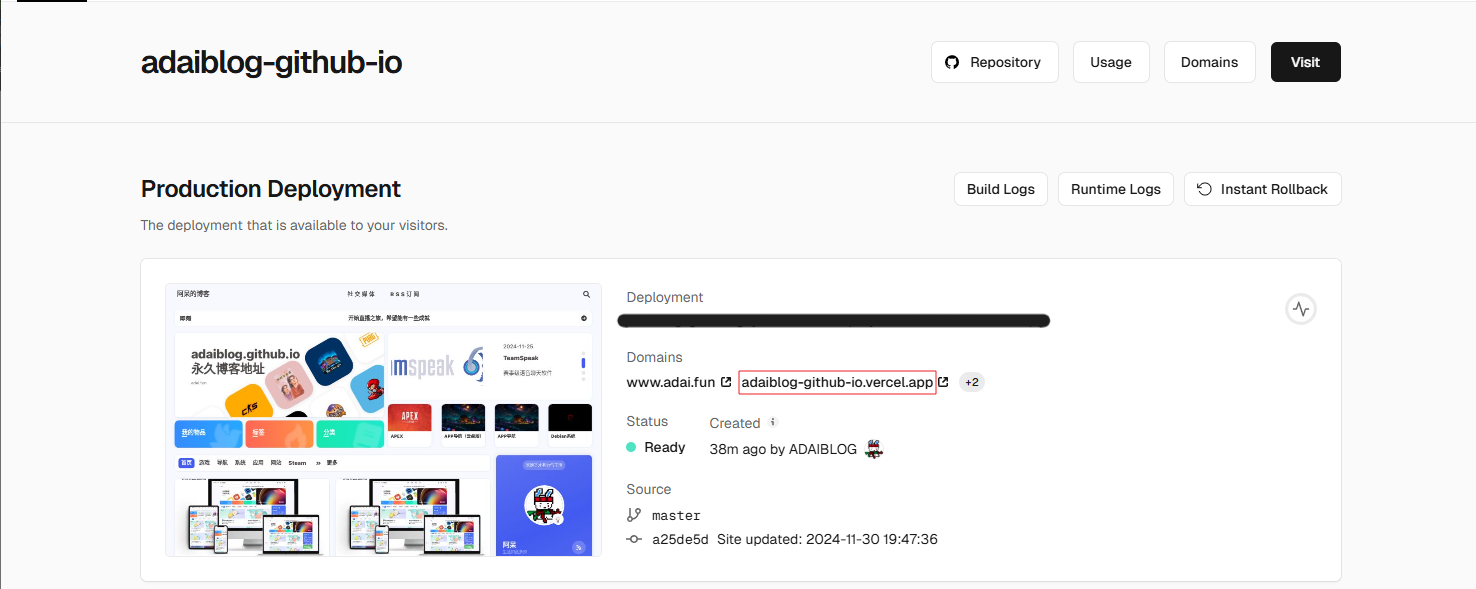 导入之后即可获得一个Vercel域名